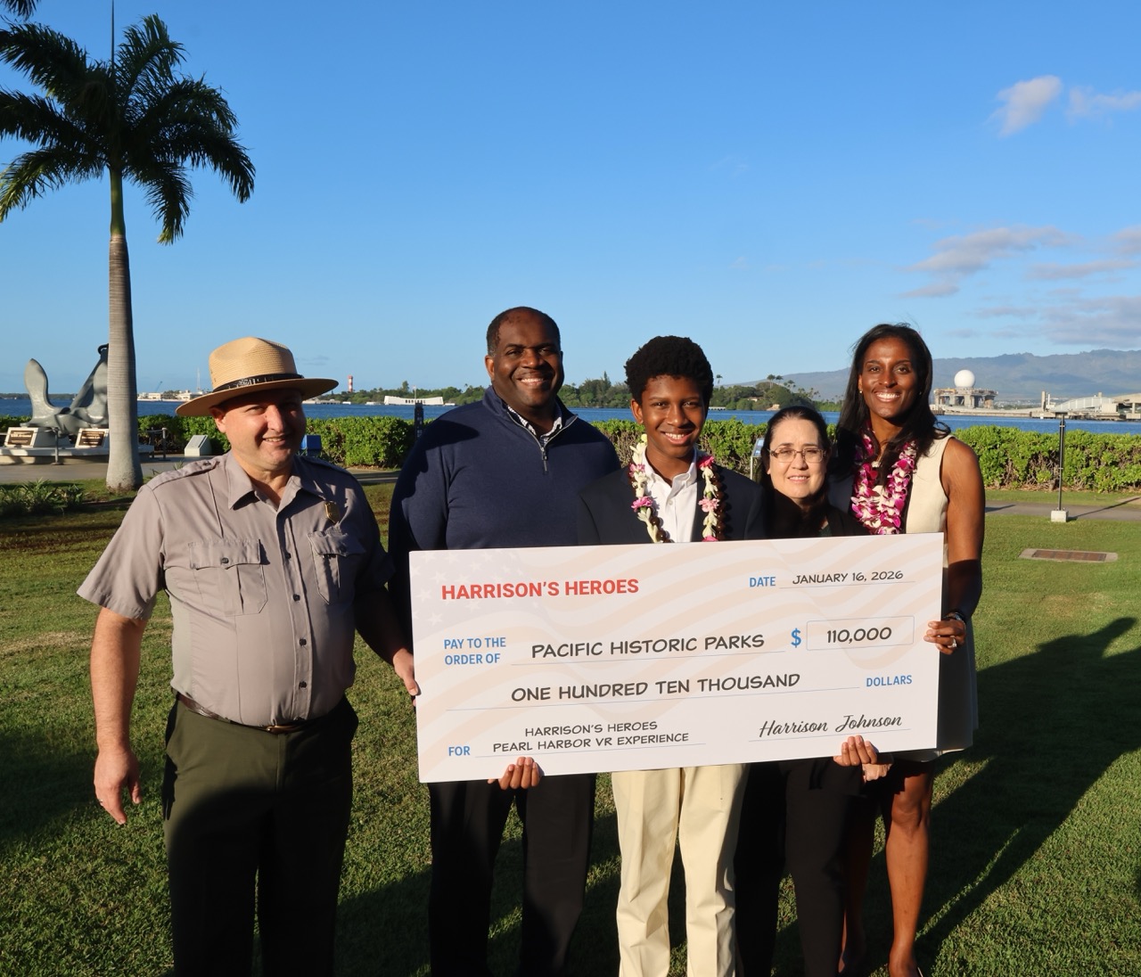 HONOLULU, HI, UNITED STATES, January 20, 2026 /EINPresswire.com/ -- Pacific Historic Parks (PHP) celebrated the public launch of Harrison’s Heroes: Pearl Harbor Virtual Reality Experience at Pearl Harbor National Memorial on Friday, January 16, 2026. When he was just 8 years old, North Carolina native Harrison Johnson set an ambitious goal to raise $100,000 to build a new way for students to learn Pearl Harbor history, and then exceeded it. Now 12 years old, the young historian and entrepreneur spent the past year working with engineers to develop the experience in partnership with Pacific Historic Parks. The educational tool was unveiled at 8:06 a.m., timed to the moment the first bomb struck the USS Arizona on December 7, 1941.— Aileen Utterdyke, President and CEO of Pacific Historic Parks