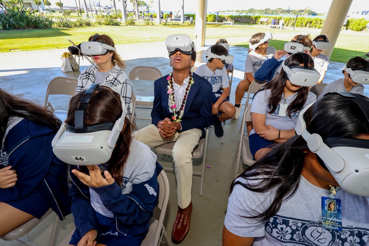 After the launch, Johnson spoke with local students to share the virtual reality program. “I wanted more students to learn what happened here and why it matters. I’m grateful to everyone who helped bring my vision to life so more kids can learn, honor, and understand,” he said. Johnson also met 97-year-old World War II veteran Melvin Herold, who was on his first trip to Hawaii.