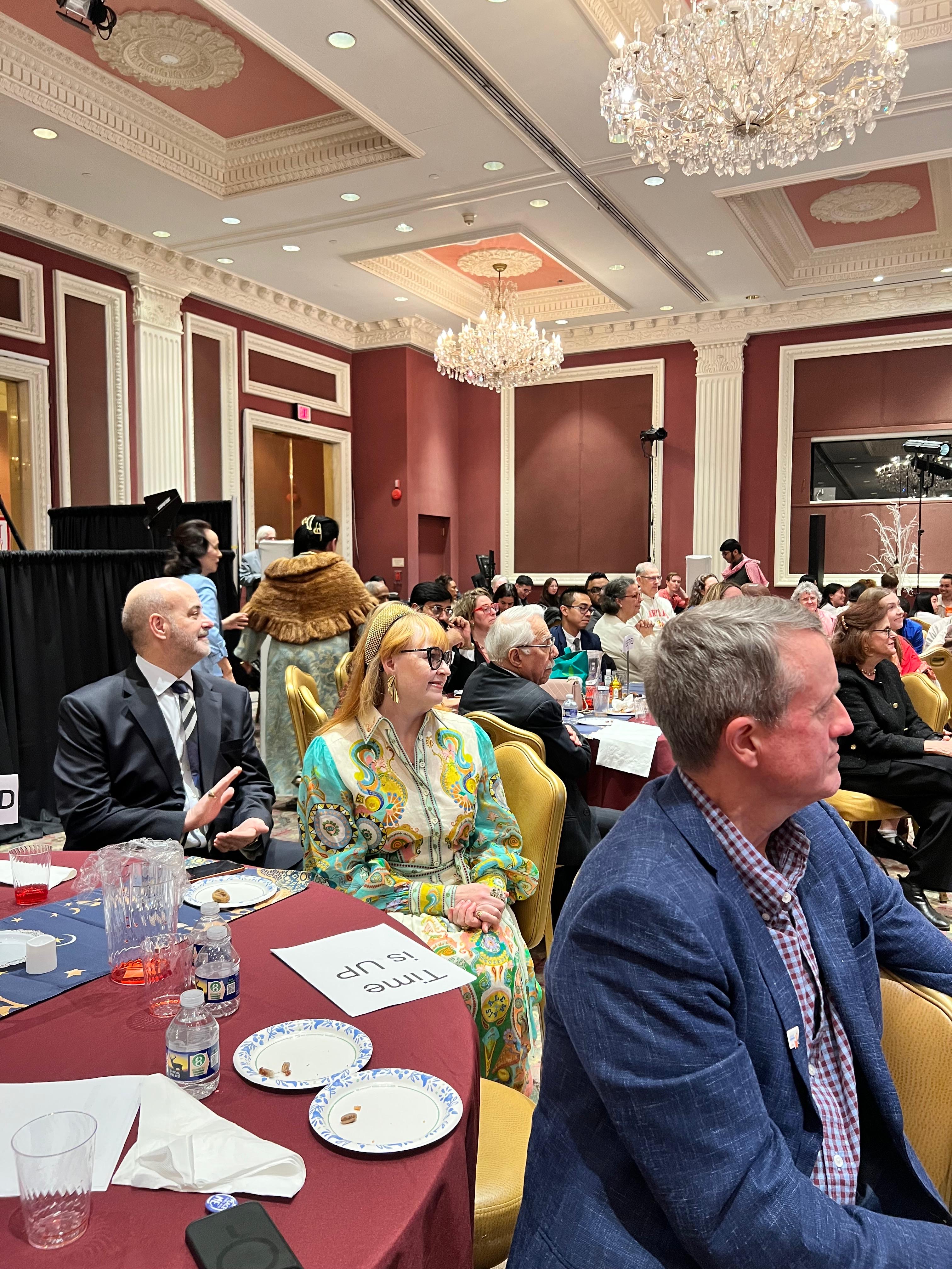 Guests gathered at the event observed Iftar along with their Muslims attendees who broke their fast with dates and samosas.