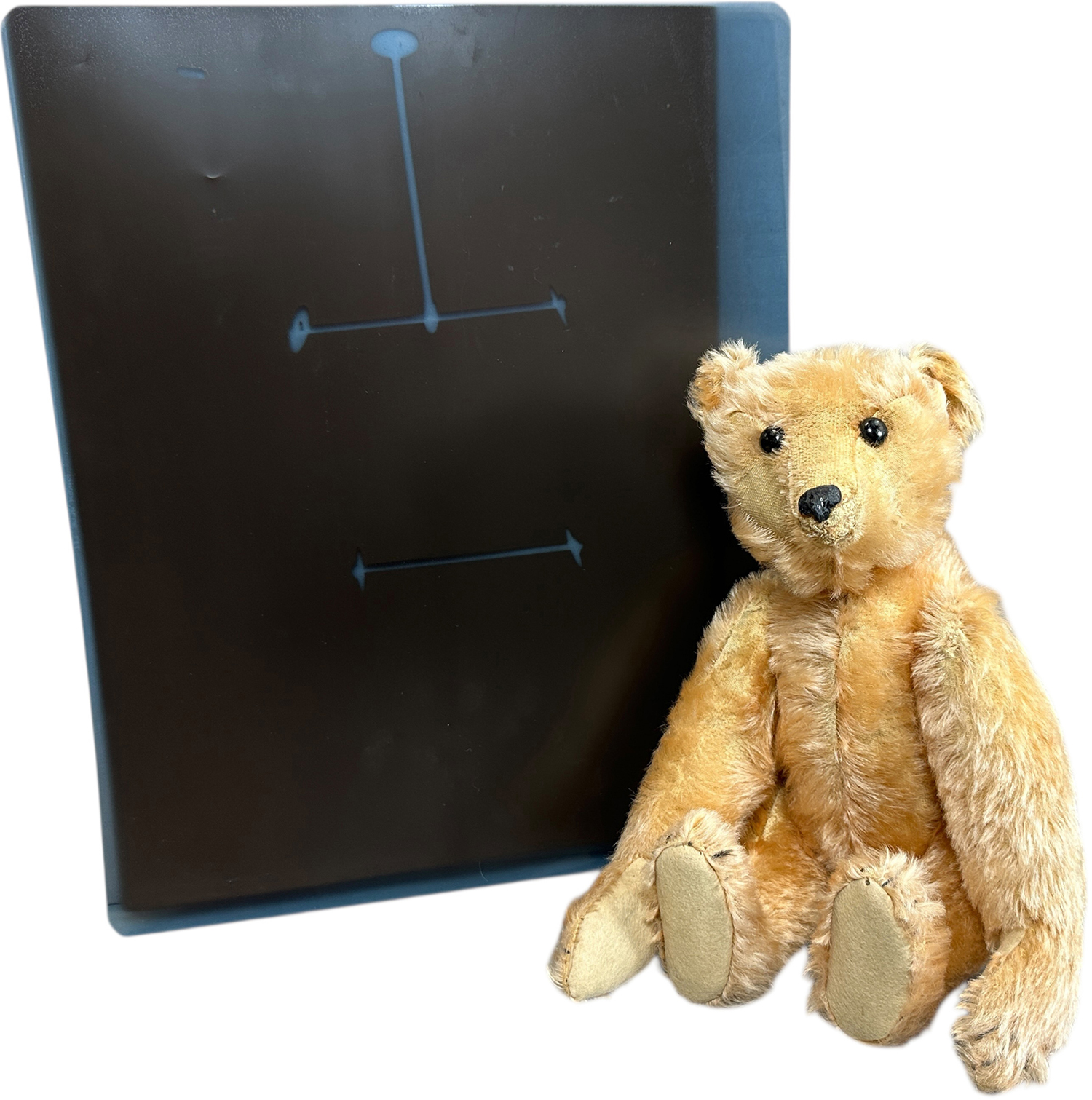 For most vintage button-in-ear collectors, Steiff’s turn-of-last-century “rod bears” are unquestionably the ultimate in Steiff productions. These rarities, made with an internal rod-style skeleton for jointing, only appeared in the line from about 1904 to 1905. This jointing system shows up prominently in an x-ray, and that’s the best way to confirm a bear’s internal connectors. Rod bears tended to vary quite a bit in their actual looks and presentation, given they were so early and made by hand, with patterns that were rapidly evolving.