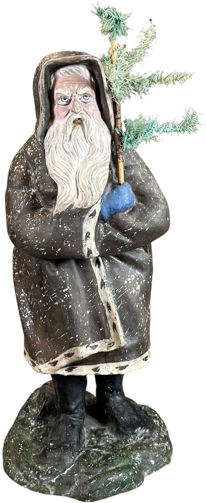 Enormous, 24½-inch-tall papier-mâché Santa figure from the late 1800s, with a wonderful styling, plus great form and impression, in excellent condition. Provenance: Ed & Brenda DeGarbolewski collection. Sold for $26,400