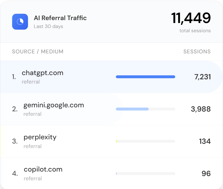 3) Page-Level Visibility Tracking: Moves beyond vanity metrics by tracking AI mentions and AI-driven visitors down to the specific page level, showing businesses exactly which LLM model drove the traffic.