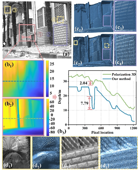 Notably, this research achieves passive scene-level polarized 3D imaging, with no need for any active information. The pixel-level information interpretation ensures that 3D imaging accuracy depends solely on the camera’s resolution. It then advantages in non-contact operation, no scanning, no radiation, and high precision. Furthermore, the core physical mechanism of this technology is universal. Its principle of inferring surface normal from polarization can, in theory, be extended to various natural scenes. In future, by integrating multispectral polarization imaging and deep learning-based prior modeling, interference from strong stray light and other disturbances can be further suppressed. This holds promising potential for important applications such as autonomous driving, remote sensing monitoring, and cultural heritage preservation. Moreover, the mathematical solution for the high-precision 3D inversion problem based on polarization cues in discontinuous natural scenes also contributes to a deeper understanding of light-matter interaction and multi-dimensional information fusion. This advancement promotes the interdisciplinary integration and innovative development of polarization optics and computer vision.