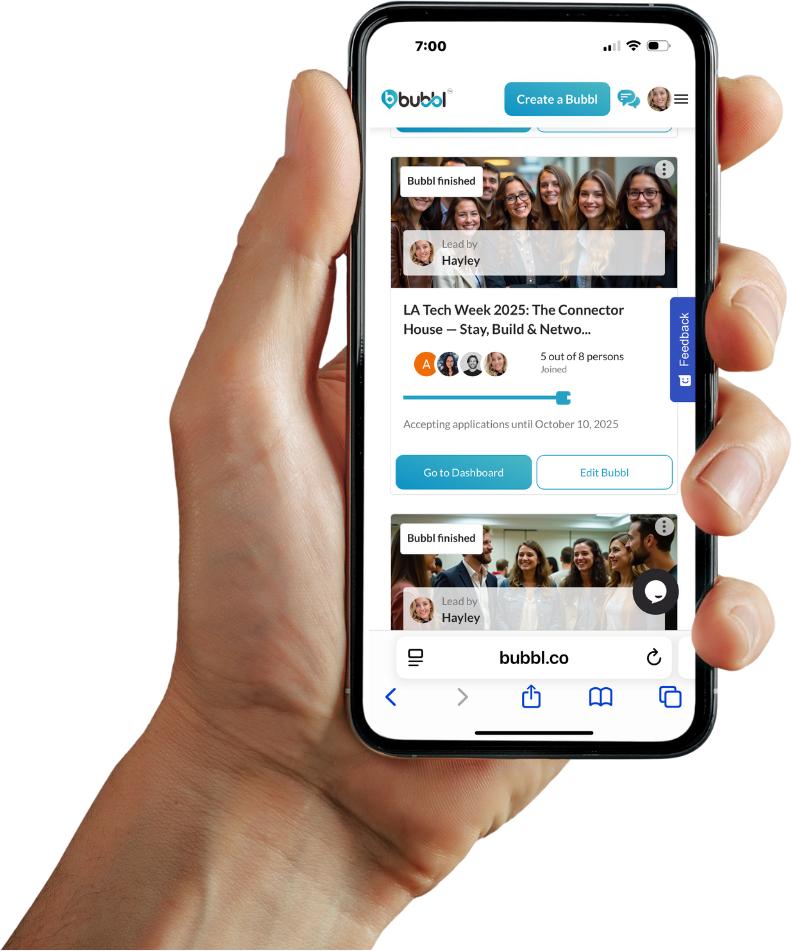 The platform is designed to grow through designated Leaders, who might be community organizers, event creators, or natural ‘connectors’ who help shape each Bubbl. For homeowners, Bubbl incorporates identity verification measures for participants sharing accommodations. Additional platform trust and safety features include user profiles, screener questionnaires, ratings, and integrated payments.