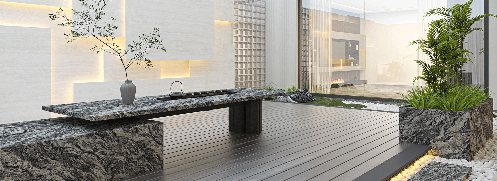 Architects are increasingly opting for larger slab formats and thinner yet stronger materials such as sintered stone for facades, countertops, ventilated walls and outdoor applications. Sintered stone boasts superior stain resistance, UV stability and durability making it the go-to material in high-end projects.