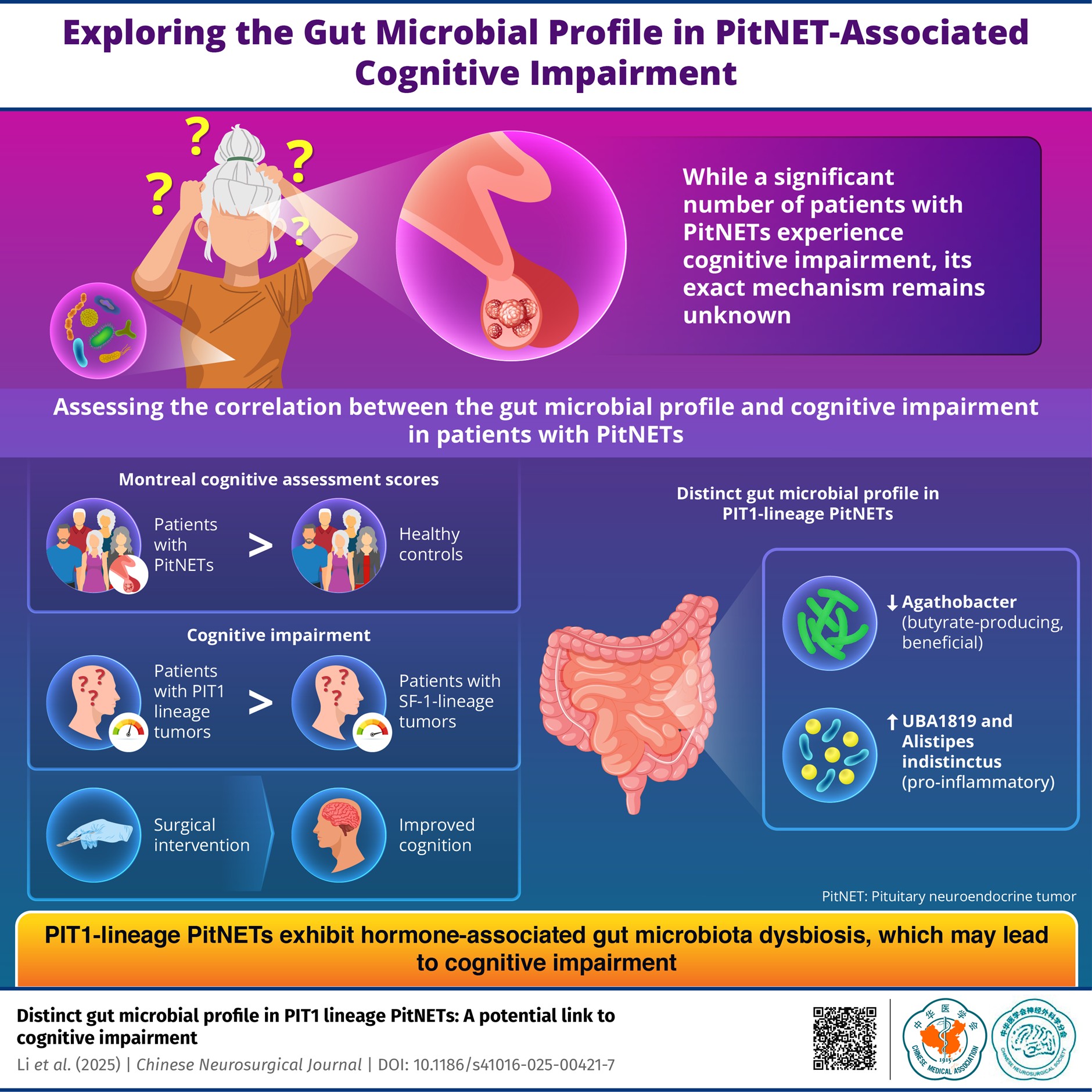 CHINA, March 9, 2026 /EINPresswire.com/ -- Pituitary neuroendocrine tumors (PitNETs) are commonly associated with visual disturbances and endocrine abnormalities; however, many patients also experience cognitive deficits, particularly in memory, attention, and executive function, which significantly affect quality of life. Despite increasing recognition of this burden, the mechanisms underlying cognitive impairment remain unclear. Traditionally, cognitive changes have been attributed to tumor mass effects or direct compression of surrounding structures. Emerging evidence, however, implicates hormonal dysregulation and the gut–brain axis, suggesting that intestinal microbiota may influence cognition through inflammatory, metabolic, and endocrine pathways.To bridge this gap, researchers from Kunming Medical University, led by Dr. Xingli Deng, conducted a prospective cross-sectional study to evaluate cognitive function in patients with PitNETs and examine associations among tumor lineage, hormonal abnormalities, and gut microbiota composition. The study made available online and published in Volume 11, Issue 33 of the Chinese Neurosurgical Journal on 30 December 2025. Dr. Deng explained the motivation behind the study, “By integrating neurocognitive assessment with endocrine profiling and microbiome analysis, we aimed to move beyond traditional explanations centered solely on tumor size and mass effect, and instead explore a more comprehensive, biologically grounded model of cognitive dysfunction in PitNET patients.”