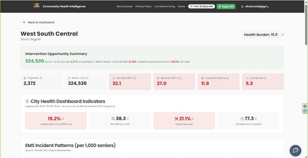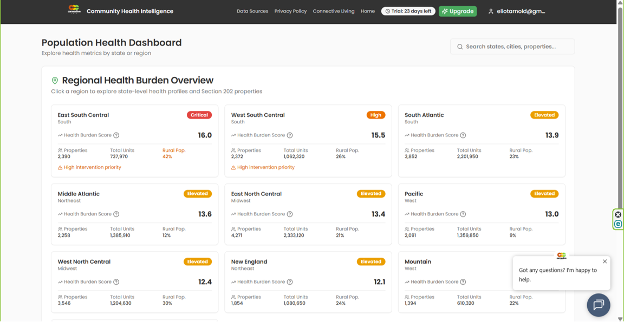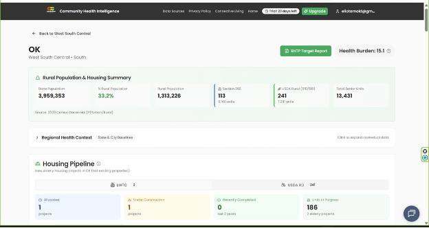 KANSAS CITY, MO, UNITED STATES, February 6, 2026 /EINPresswire.com/ -- Billions of dollars are being mobilized through state and federal Rural Health Transformation Plans (RHTP), yet many programs still struggle with the same fundamental problem: where, exactly, to deploy.Today, Connective Care announced the launch of its Community Health Intelligence Platform (CHIP)—an AI-fueled intelligence layer designed to close that execution gap by revealing the health and access conditions surrounding more than 33,000 federally subsidized senior housing communities across the United States.