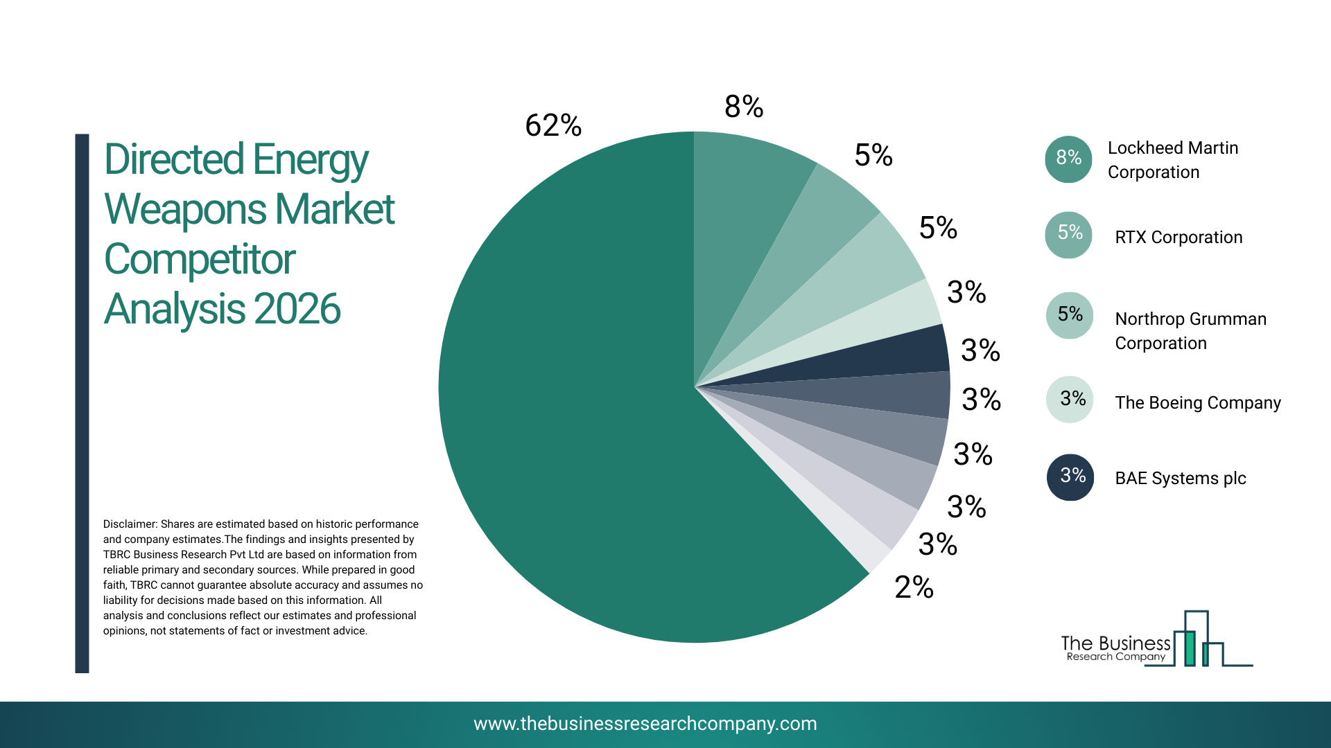 LONDON, GREATER LONDON, UNITED KINGDOM, March 13, 2026 /EINPresswire.com/ -- "The Directed Energy Weapons market is dominated by a mix of global defense primes, specialized laser and high power microwave developers, and subsystem innovators across optics, beam control, power electronics, and thermal management. Companies are focusing on higher power scalable architectures, rapid platform integration for land and naval systems, and operationally proven counter UAS and short range air defense use cases to strengthen market presence and accelerate procurement. Understanding the competitive landscape is key for stakeholders seeking capability partnerships, integration tie ups, and long term defense contracts across multi domain programs.