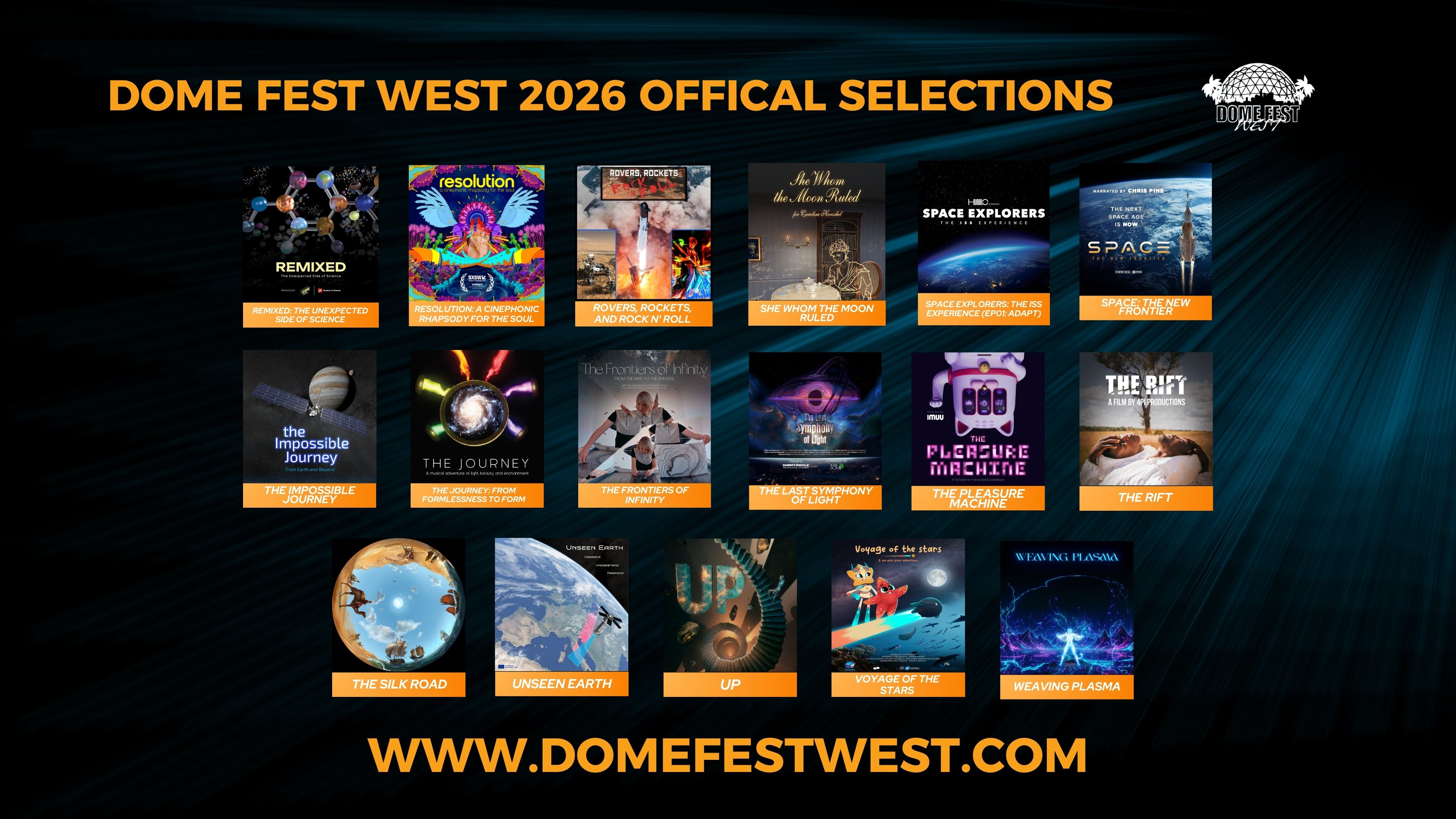 BOULDER, CO, UNITED STATES, February 18, 2026 /EINPresswire.com/ -- Dome Fest West (DFW), North America's leading festival dedicated exclusively to fulldome cinema, proudly announces the official selections for its 2026 edition. Taking place April 23–26, 2026, at the renowned Fiske Planetarium on the University of Colorado Boulder campus, the festival will present 38 curated films and live programs spanning science, music, immersive art, cultural storytelling, and experimental dome innovation.