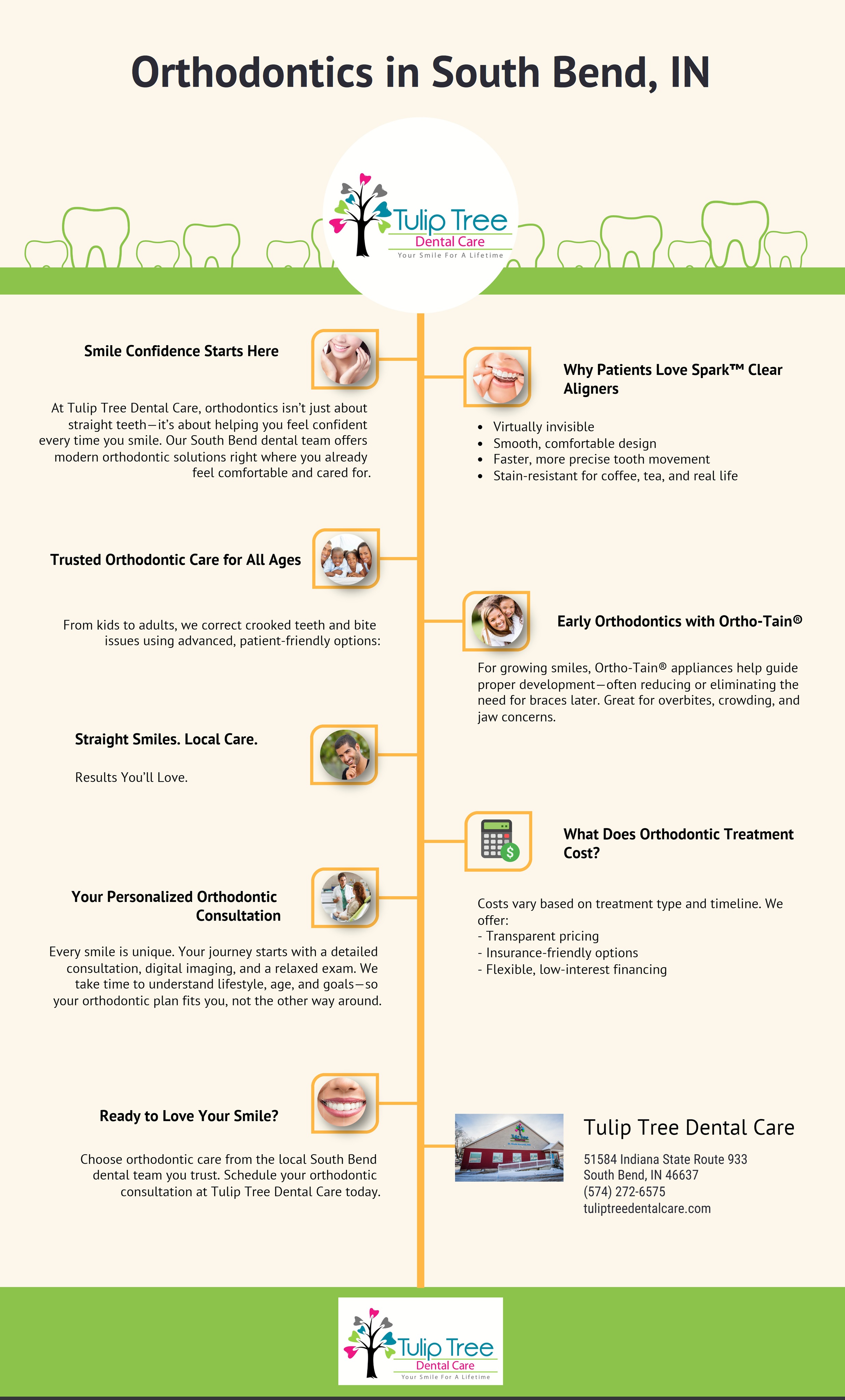 Tulip Tree Dental Care is a family-focused dental practice serving South Bend, Indiana, and surrounding communities. The practice provides comprehensive dental services, including preventive care, restorative dentistry, and modern orthodontic solutions for patients of all ages.