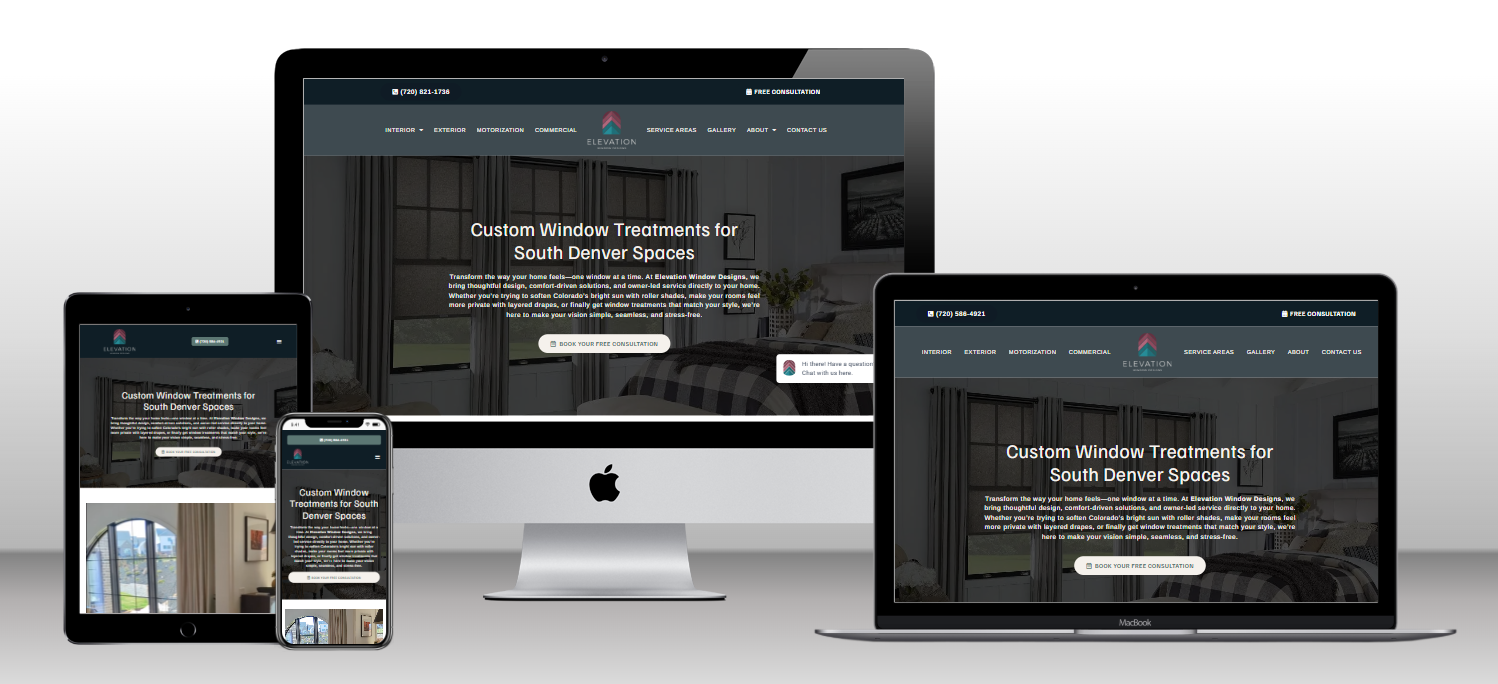 Elevation Window Designs partnered with Window Treatment Marketing Pros (WTMP), a digital marketing agency specializing in the window treatment industry, to develop the new website. WTMP led the web design and search engine optimization (SEO) strategy and implemented pay-per-click (PPC) advertising to support lead generation and visibility across the Southeast Denver market.