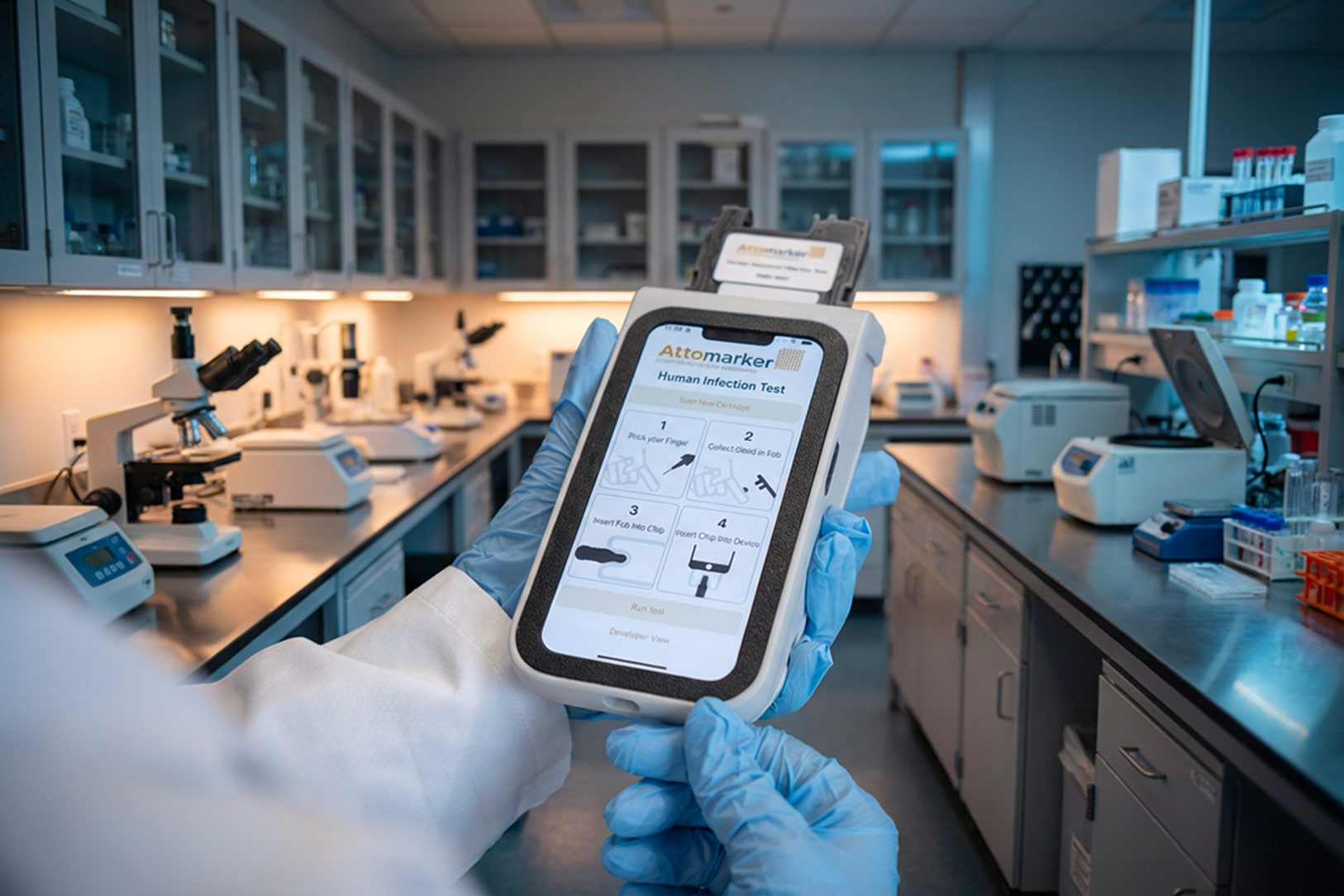 Attomarker’s technology is based on an optical gold nanoparticle array capable of rapid, label-free, multiplex biomarker measurement from tiny blood samples. It is designed to produce laboratory-quality results in minutes and to scale across disease indications including infection, inflammation, endocrine dysfunction and allergy.