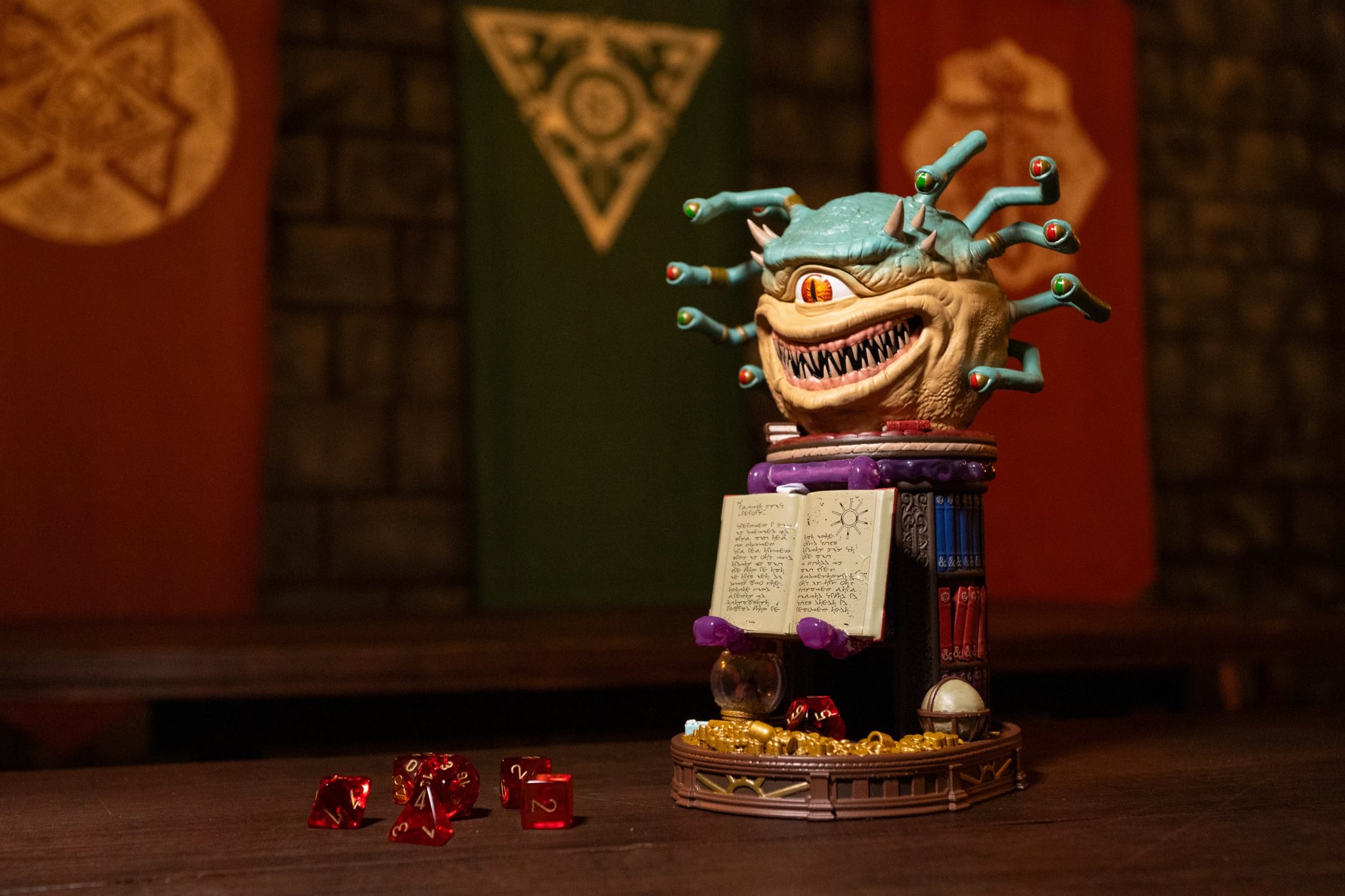 Designed as both a premium collectible and a functional desktop piece, the Xanathar Cable Guy is built to hold phones, controllers, remotes, and gaming essentials. Hidden within the sculpt is an integrated Dice Tower, allowing fans to roll directly from Xanathar’s lair while immersing themselves in the world he dominates. The piece captures the beholder’s imposing presence, obsessive paranoia, and unmistakable personality, with Sylgar the goldfish faithfully by his side.