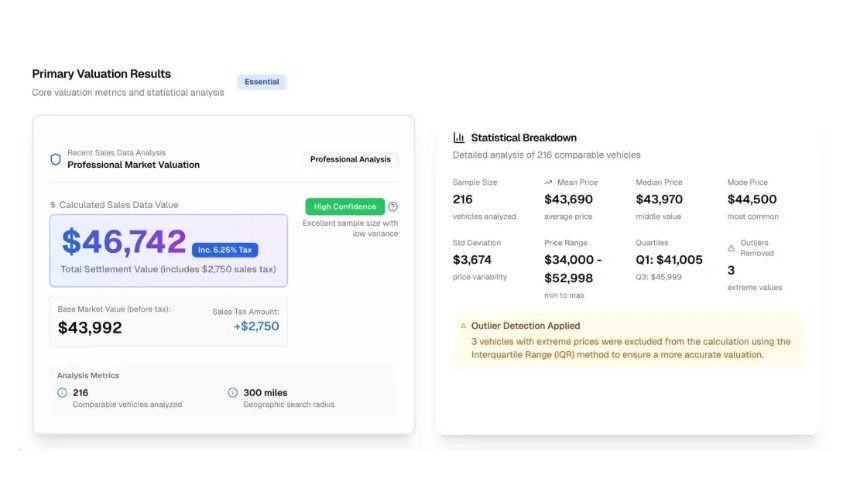 Vehicle Value Analysis (VVA) provides an accurate vehicle valuation based on real market sales within minutes, offering transparent documentation that can be utilized in negotiations when selling a vehicle or during the insurance claims process following an accident. VVA specializes in providing valuation solutions for attorneys representing vehicle owners and automotive lienholders, ensuring that every client receives accurate and complete compensation. VVA is an affiliate of Vehicle Value Experts.