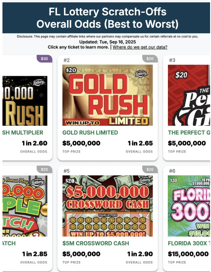 Consumers can now access up to date information on scratch ticket games covering 44 U.S. states, including odds of winning, remaining prizes, prize payouts, and more.