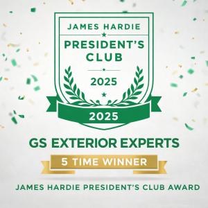 5× James Hardie President’s Club Award winner. GS Exterior Experts is recognized as one of the top Hardie contractors in Colorado and the U.S.