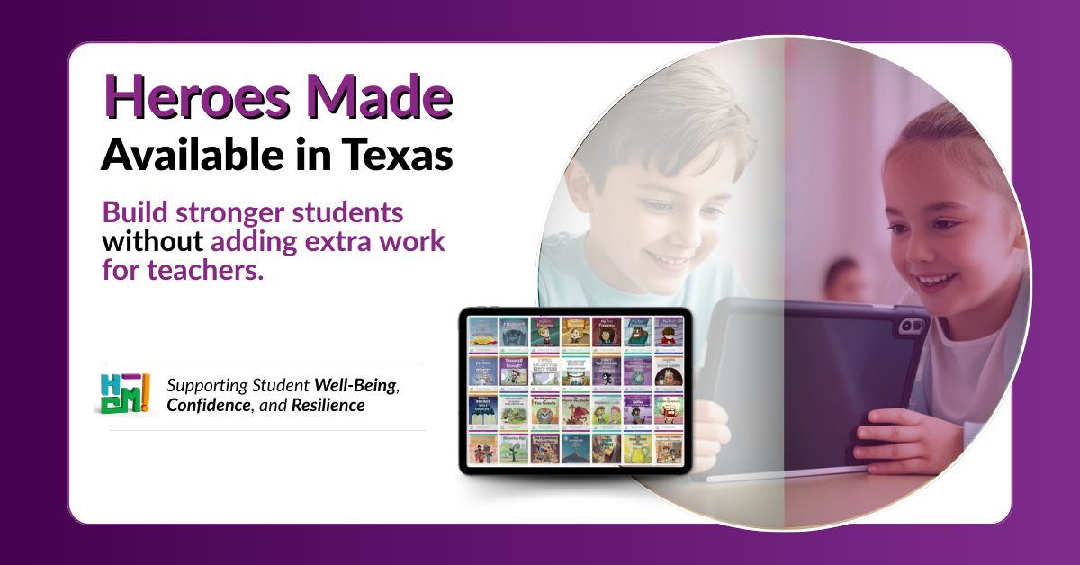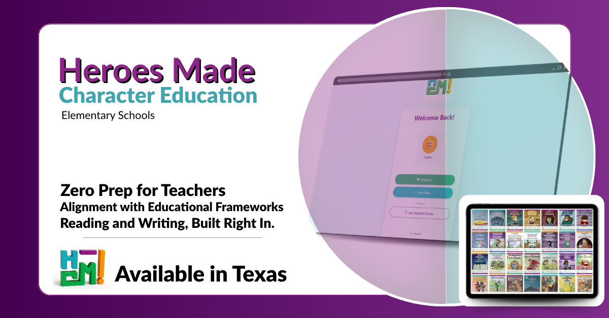 Heroes Made integrates into existing class time with zero prep, helping Texas elementary schools build character, communication, and life skills.