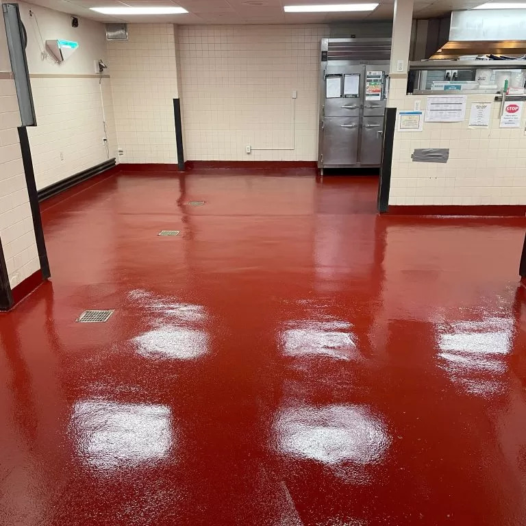Commercial kitchens are high-pressure environments where flooring must withstand constant moisture, extreme temperature fluctuations, and heavy foot traffic. Traditional flooring often fails under these conditions, leading to cracks, grout deterioration, and potential health hazards. High Performance Systems addresses these challenges with a resinous flooring solution that chemically bonds to concrete, creating a non-porous, impact-resistant surface.
