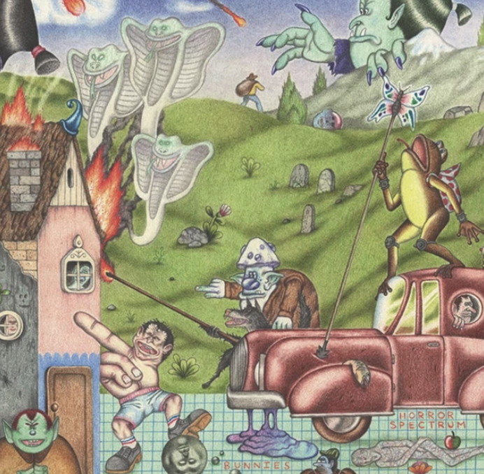 With four studio LPs under their belts, a sense of genuine curiosity permeates everything they do. The band’s collective approach allows their sound to stretch into brand new terrain, embracing structures and textures previously unexplored while remaining unmistakably their own. They lead listeners beyond the limits of imagination not out of obligation, but out of pure love for the journey. Proudly self-proclaimed weirdos, BUNNIES continue to prove there’s no such thing as too weird. Horror Spectrum, their newest LP and nearly half a decade in the making, fully earns its name: a psychedelic, eerie, unexpected, and intoxicating plunge into the deepest darkest chasms of one’s tortured soul. It’s an art-rock odyssey without a spacesuit, bursting with technicolor fracture, euphoric dissonance, and boundless terrains of sonic and psychological complexity.