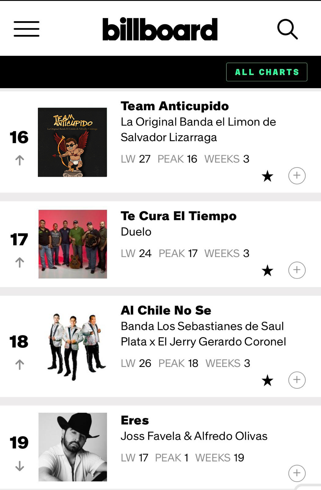 Además, es importante destacar que en Billboard®, dentro del Regional Mexican Airplay Chart, “Team Anticupido” asciende al #16 en su tercera semana, reflejando su sólido crecimiento y creciente impacto en la radio especializada del mercado estadounidense.