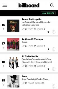 El éxito del tema se extiende a otros mercados clave: en Estados Unidos, “Team Anticupido” se posiciona en el #7 del Chart General de Monitor Latino, mientras que en México se mantiene con fuerza en el #10 del Chart General, confirmando el gran momento que vive la banda a ambos lados de la frontera.
