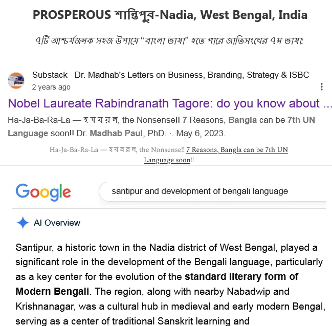 Santipur (Nadia) can play a pivotal role towards better dignified and prosperous life of “Bangla/Bengali Speaking People” worldwide.