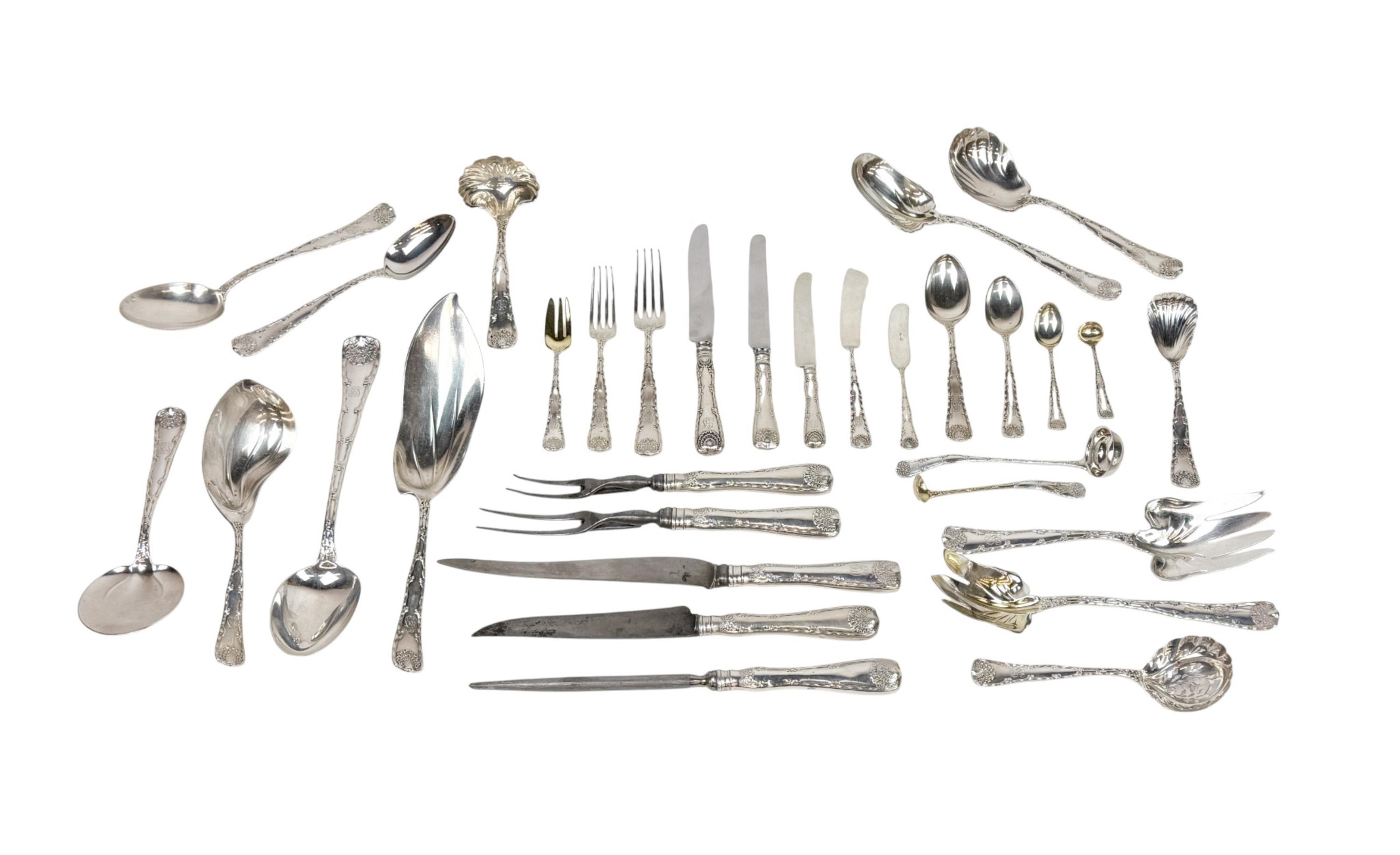 Tiffany & Co 175-piece sterling flatware set in the ‘Wave Edge’ pattern, monogrammed ‘GGS,’ weighing in at 225.86 ozt. Estimate: $16,000-$18,000