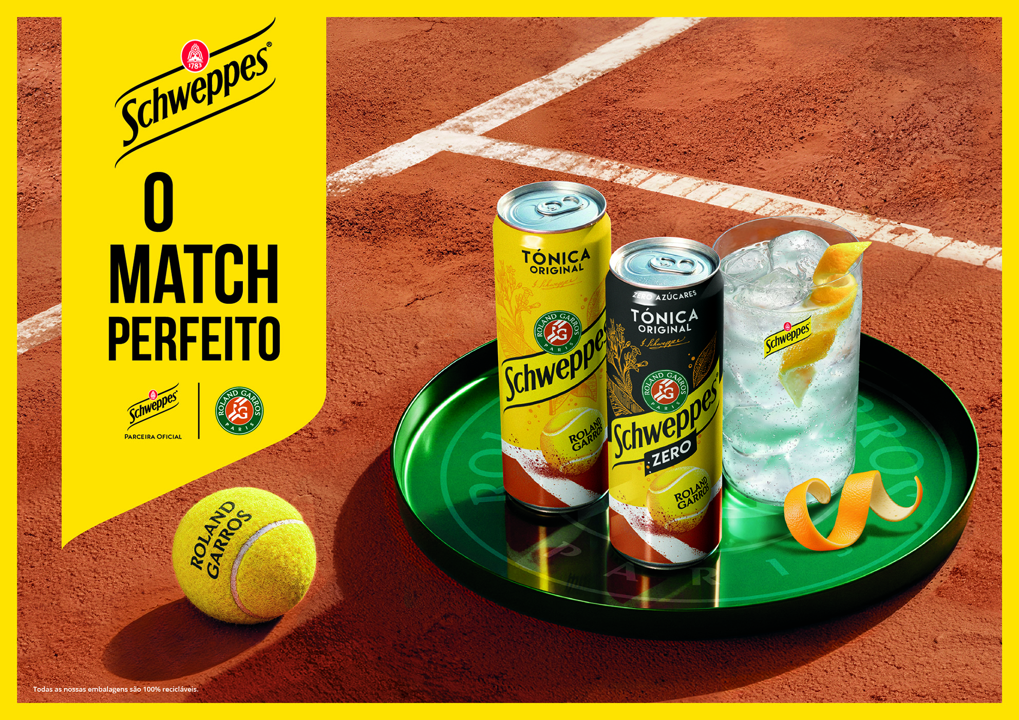 Para Schweppes®, esta parceria é um convite para que os adeptos desfrutem plenamente da experiência Roland Garros, abraçando os momentos de sofisticação e prazer que caracterizam o torneio. A união entre a Schweppes® e Roland Garros estabelece uma parceria de longo prazo entre dois nomes prestigiados, unidos por uma apreciação comum do legado, da precisão e da excelência. Para além da competição em campo, Roland Garros destaca se pela sua atmosfera única, rituais e estética, onde a distinção e o prazer manifestam-se tanto dentro como fora do court.