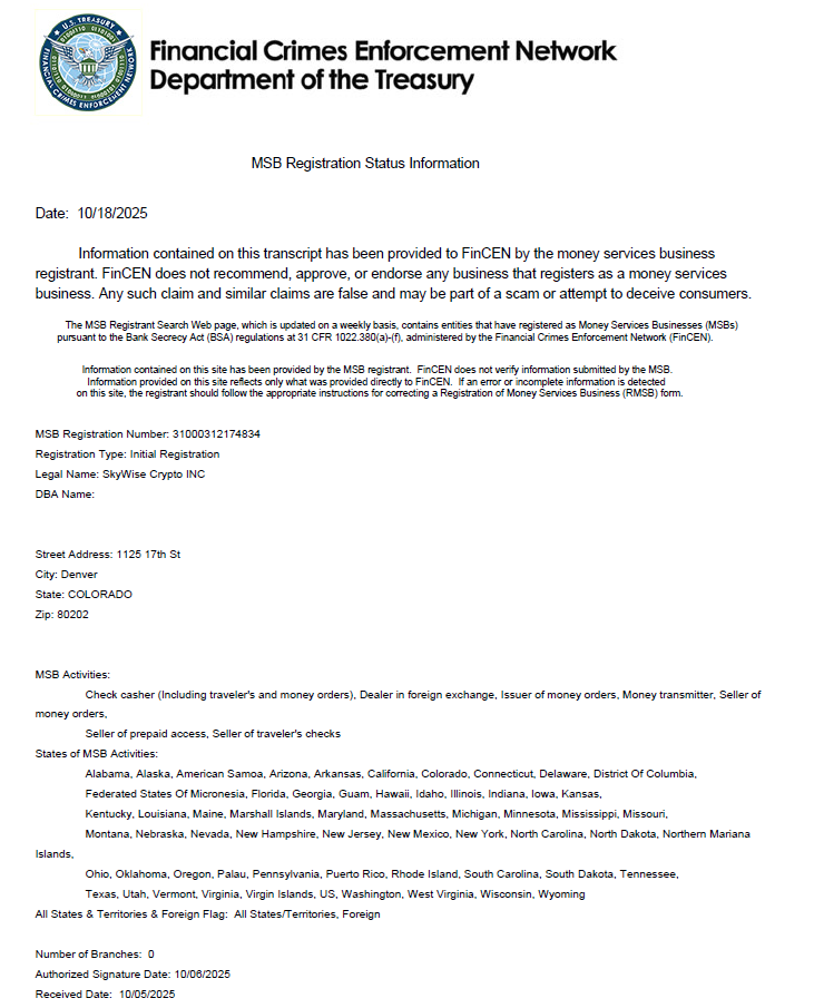 Die Produktupgrades bauen auf einem kontinuierlich weiterentwickelten Compliance- und Governance-Rahmen auf. Sky Crypto orientiert sich im operativen Betrieb fortlaufend an anwendbaren regulatorischen Anforderungen und verfügt über eine Registrierung als Money Services Business (MSB) bei dem U.S. Financial Crimes Enforcement Network (FinCEN). Diese Grundlage unterstützt langfristige Strukturen in den Bereichen Identitätsprüfung, Transaktionsüberwachung und interne Risikokontrollen. Darüber hinaus haben verbundene Einheiten Registrierungen im Rahmen des Systems der National Futures Association (NFA) abgeschlossen, die als Bestandteil der unternehmensweiten Compliance- und Governance-Struktur dienen.