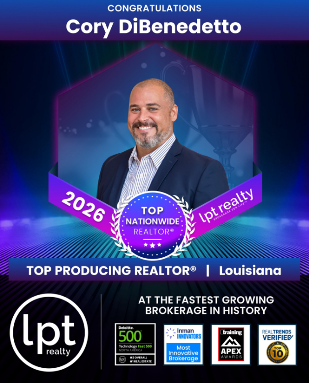 BATON ROUGE, LA, UNITED STATES, February 4, 2026 /EINPresswire.com/ -- The Southern Homes Team, brokered by LPT Realty, is proud to announce multiple honors at the 2026 Dezzy Awards, recognizing top-producing real estate professionals within LPT Realty at the nationwide, state, and ZIP code levels. The awards highlight production excellence and performance across the brokerage’s national network of agents.At the 2026 Dezzy Awards, Tracy Mathis and Cory DiBenedetto were each named Top Producing Realtors® Nationwide with LPT Realty, placing them among the highest-performing agents across the entire brokerage network. In addition to their nationwide recognition, Tracy Mathis was also honored as the Top Producing Realtor® in the 70769 ZIP code (Prairieville, Louisiana), while Cory DiBenedetto received recognition as a Top Producing Realtor® in Baton Rouge. Ronnie George was recognized as the Top Producing Realtor® in the 70737 ZIP code (Gonzales, Louisiana) with LPT Realty, reflecting outstanding performance in the local market.