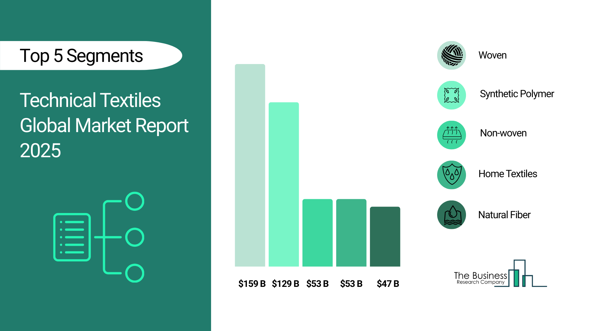 The woven technical textiles market is projected to grow by $38,271 million, the synthetic polymer technical textiles market by $35,536 million, and the home technical textiles market by $14,153 million over the next five years from 2024 to 2029.