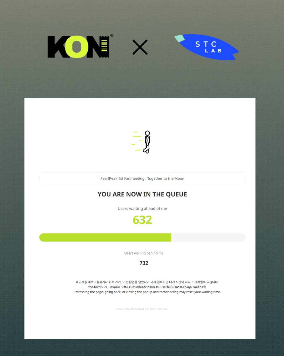 To control sudden traffic surges at the moment ticket sales opened, KONticket adopted NetFUNNEL, a virtual waiting room solution from STCLab. The solution allowed users to enter the booking process in a controlled, sequential manner, preventing simultaneous access spikes that typically lead to service disruption and unfair advantages for automated programs.