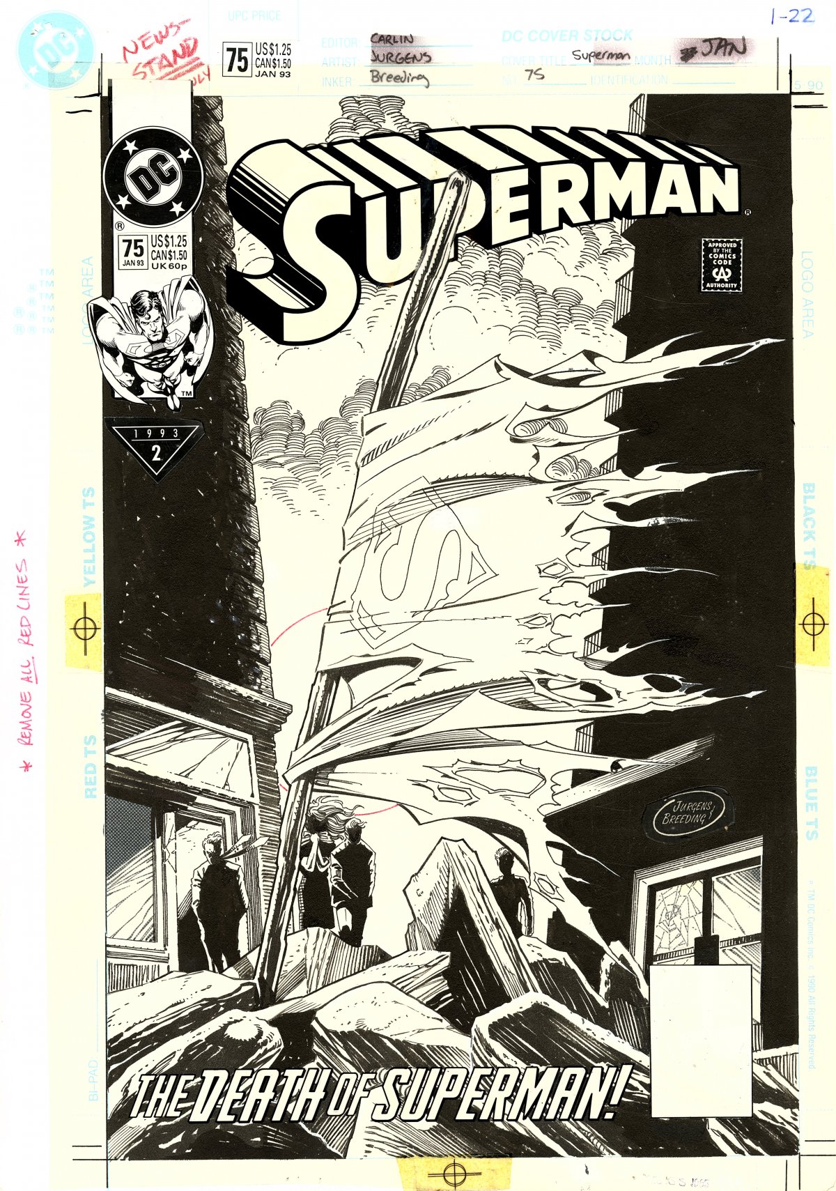 Shortly after the “Death of Superman” was published, Jurgens put the original black-and-white drawings up for auction, and the set sold for $28,000. A few years later, the buyer sold it for $200,000 to a collector, who is putting it on the market again through ComicConnect.