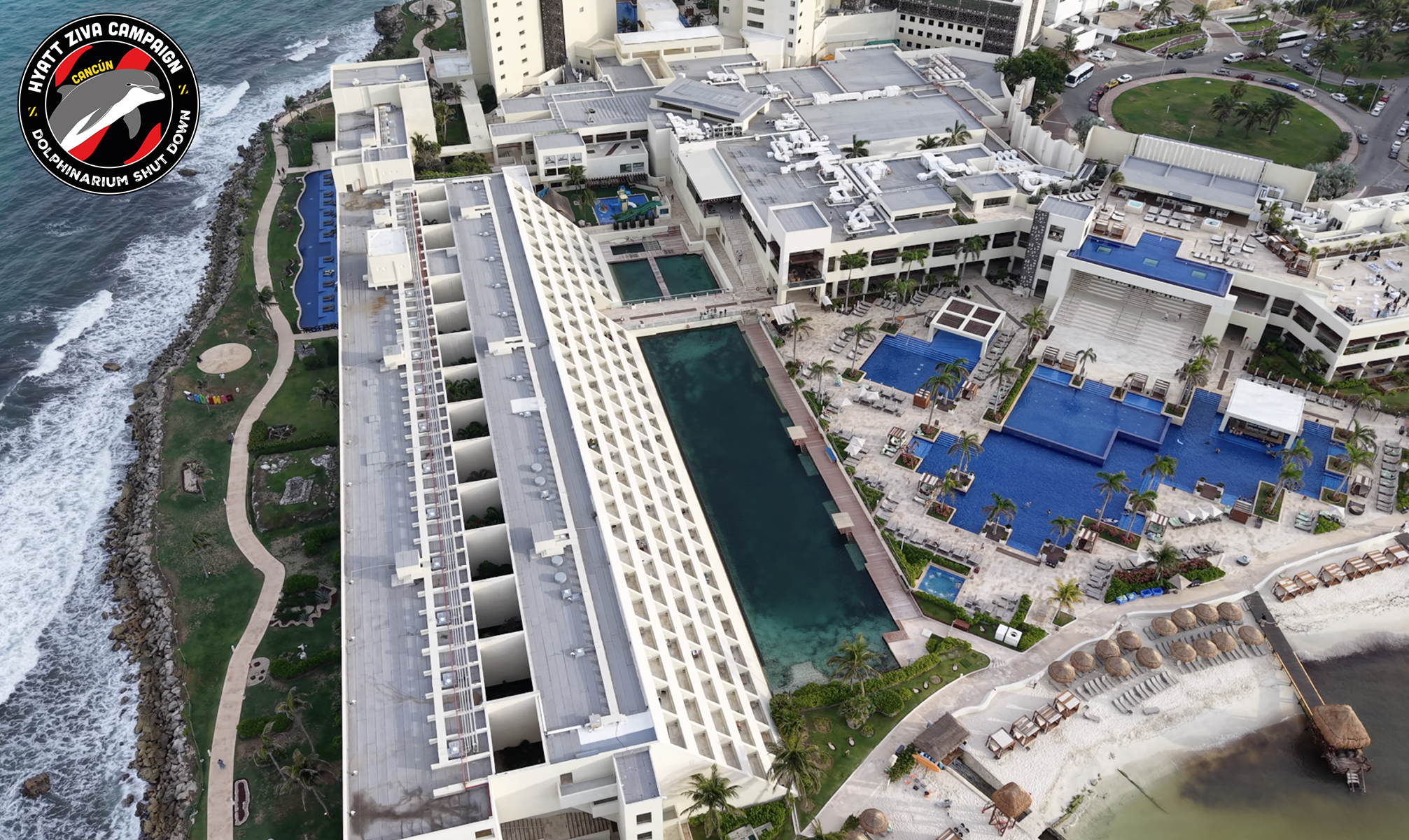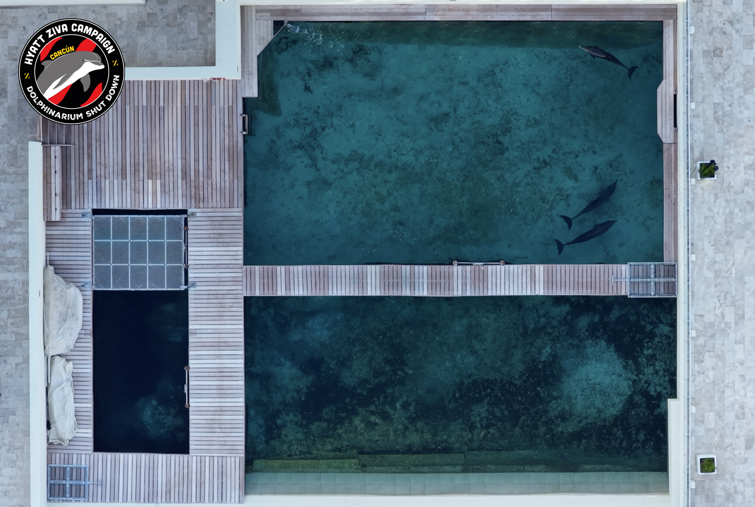 TideBreakers urges Hyatt Hotel Corporation to end captive dolphin attractions at Hyatt Ziva Cancún after drone footage shows dolphins confined in resort tanks.