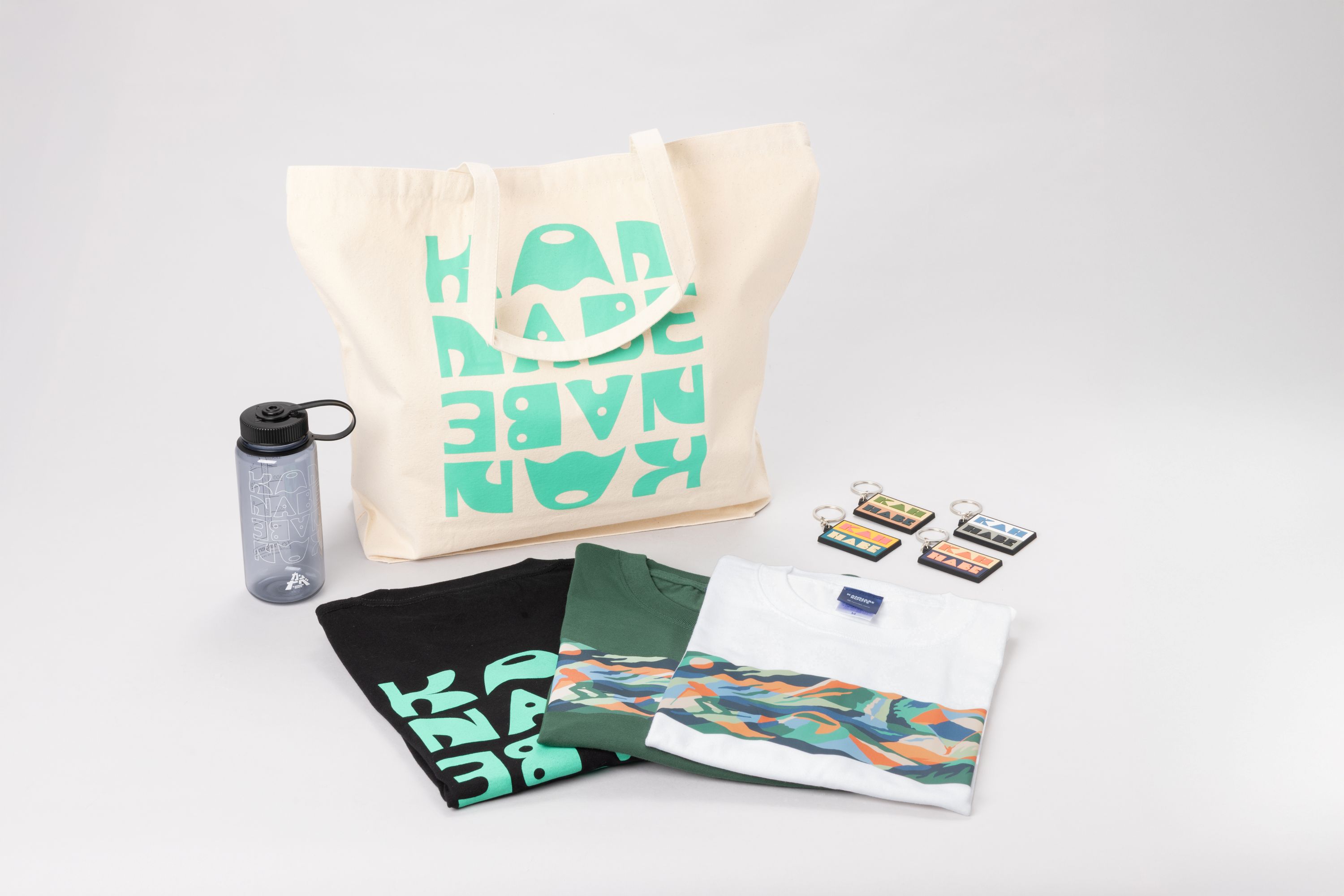 "KANNABE ROOTS" is a local lifestyle brand shaped by the volcanic soil, forest rhythms, and seasonal life of the Kannabe Highlands. Goods on sale include t-shirts, keychains, and stickers with designs inspired by Mount Kannabe.