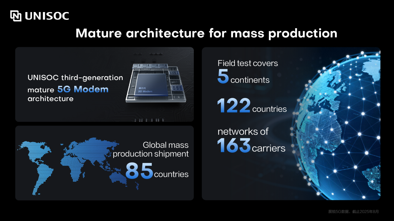5G RedCap technology significantly reduces 5G costs and power consumption by simplifying terminal RF and baseband complexity. Currently, UNISOC 5G platform has made mass shipments in 85 countries and regions globally, with network adaptation and field testing completed for 163 operators across 122 countries and regions.