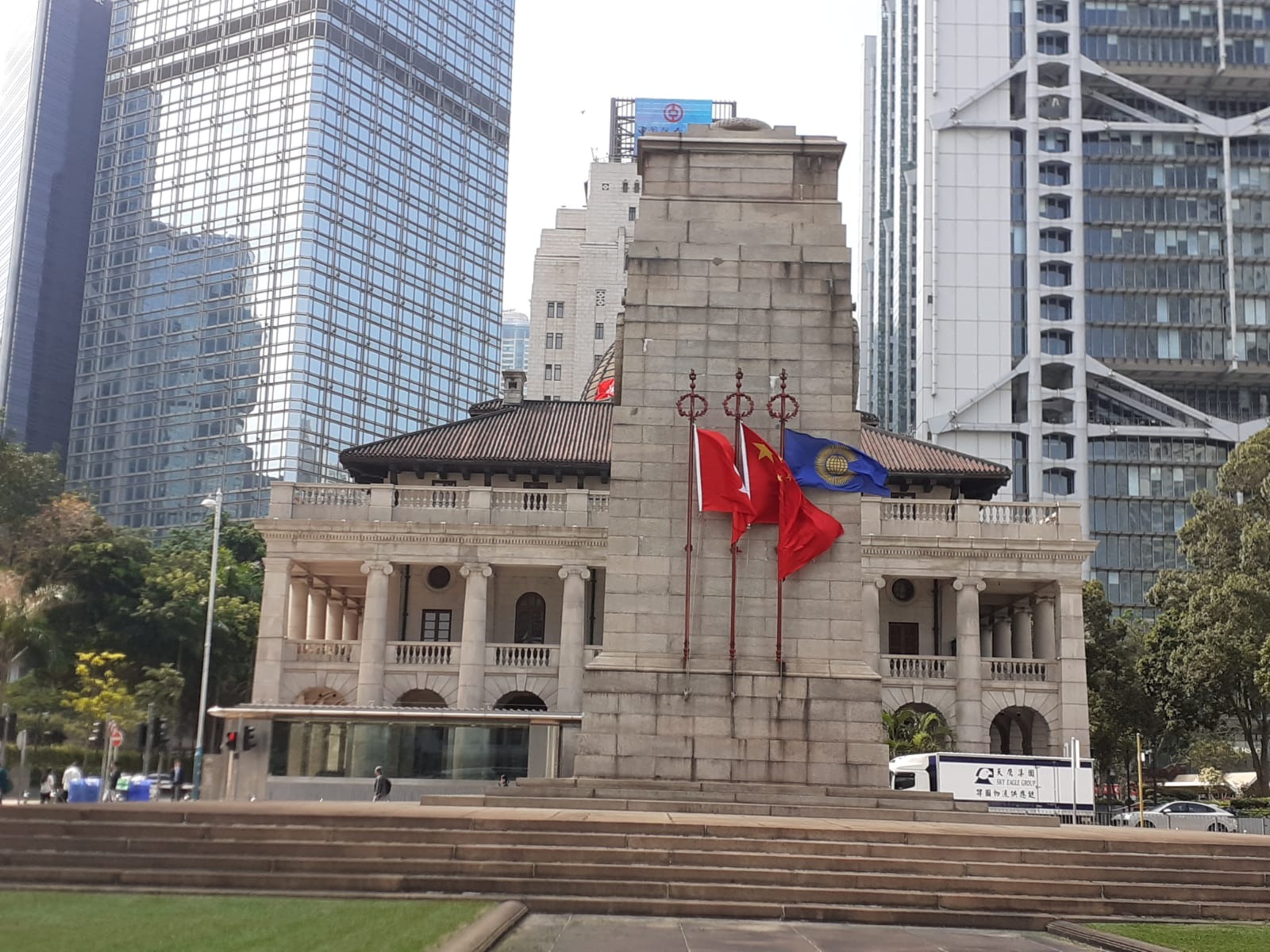 Organised by the Royal Commonwealth Society Hong Kong Branch (RCSHK), the service was led by The Reverend Will Newman of St John's Cathedral, commencing with a flag-raising ceremony that saw the Commonwealth Flag raised over the Cenotaph alongside the Chinese and Hong Kong flags. Prayers for the fallen were followed by the playing of the Last Post and the Reveille by a bugler from the Hong Kong Police Band. Poppy wreaths were subsequently laid at the base of The Cenotaph by Sir Nicholas Tam (RCSHK), Captain Charles Lee (Royal Hong Kong Regiment Association), and Mr Angus Stevenson-Hamilton QPM CPM (Royal Hong Kong Police Association).